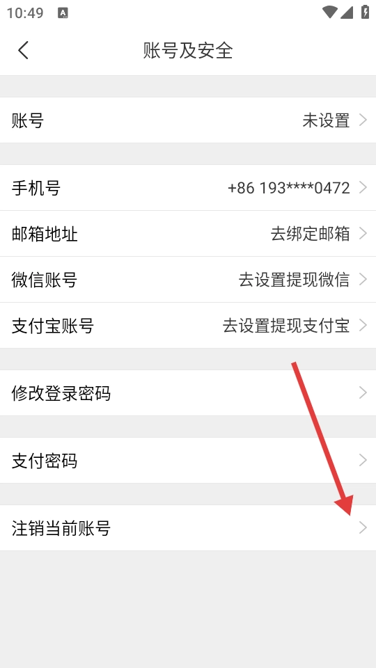 3、进入账号与安全页面后,点击【注销当前账号】选项,即可进入账号注销说明页面。