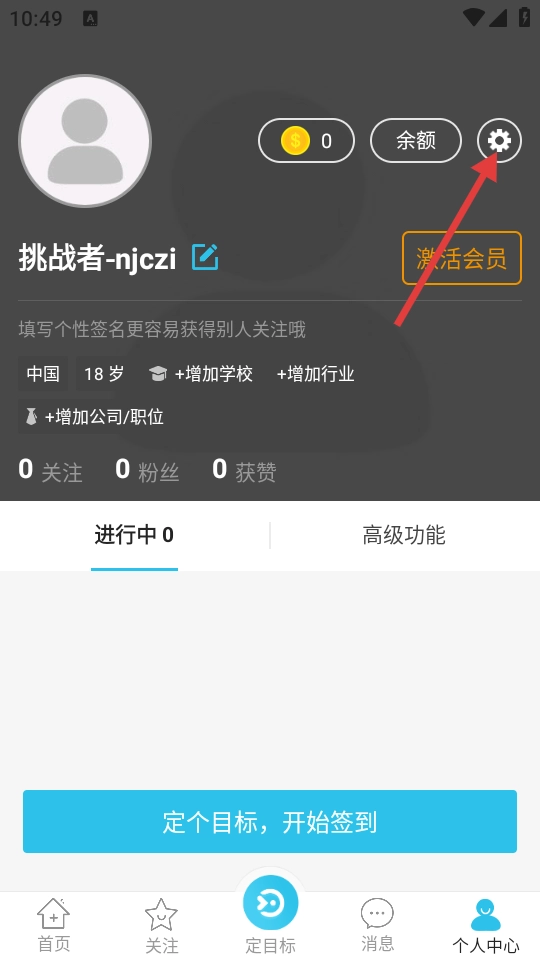 在个人中心页面里,点击设置图标就能进入设置界面。