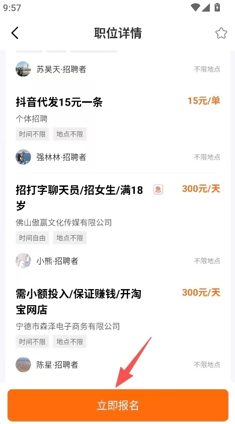 3、查看职位信息,点击立即报名,申请兼职岗位。