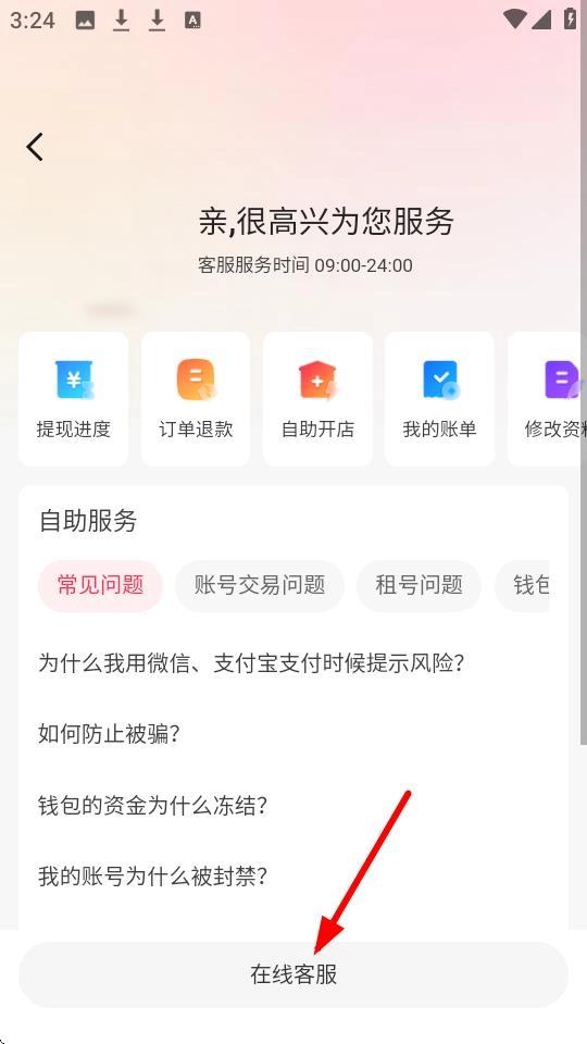 3、如果需要人工服务,点击【在线客服】即可获取客服服务。