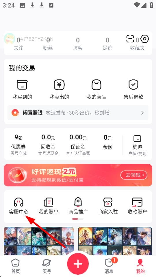 在个人页面里,你可以点击【客服中心】进入对应的客服页面来解决遇到的问题。