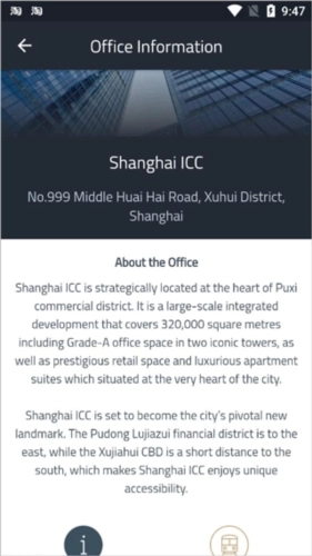 3、点击OfficeInformation,能够查看商业大厦的介绍、地址和联系方式。
