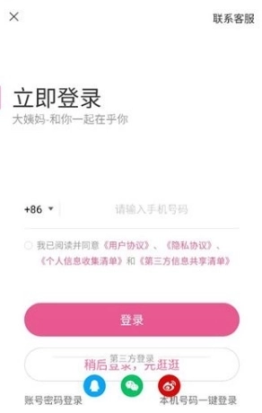 2、登录页支持两种登录方式:一是直接输入手机号登录,二是通过第三方平台账号接入。