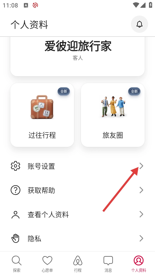 2、进入个人资料页面后,找到并点击【账号设置】选项,即可进入账号设置页面。