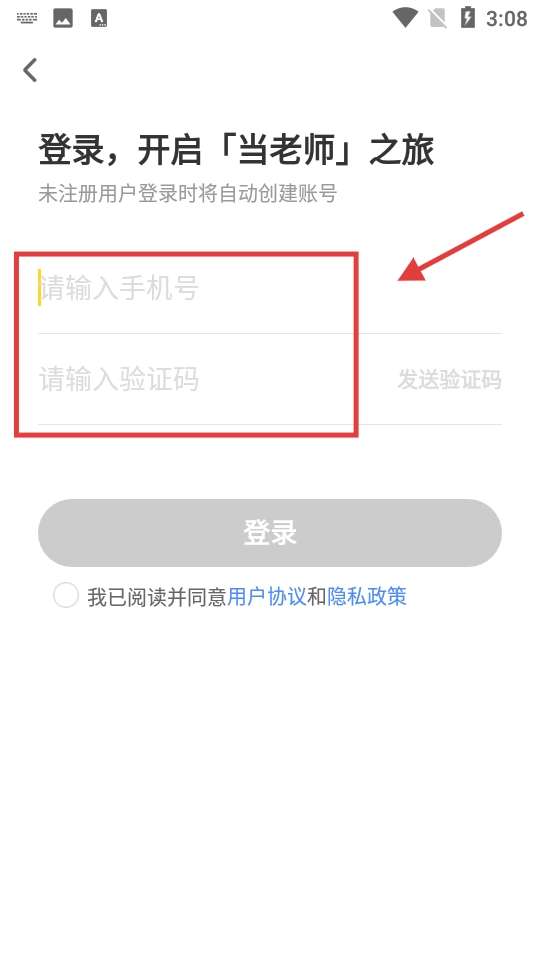 2、输入手机号码和验证码。