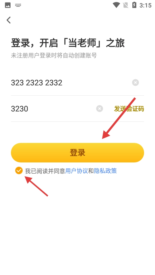 3、勾选“已阅读并同意用户协议和隐私政策”后,点击【登录】按钮。