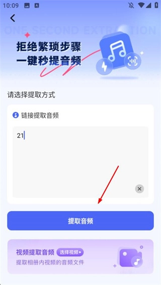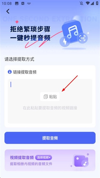 2、挑选“链接提取音频”的方式,填入需要提取音频的视频链接。