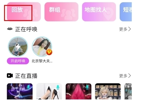 1、在首页中点击回放按钮;