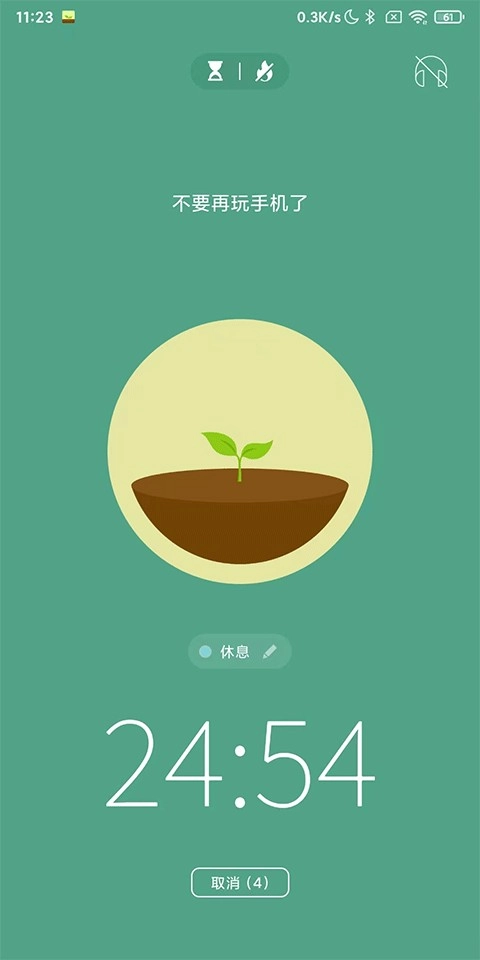 7、返回主页,点击开始按钮,从这一刻起放下手机,专注投入学习与工作,共同助力小树茁壮成长!
