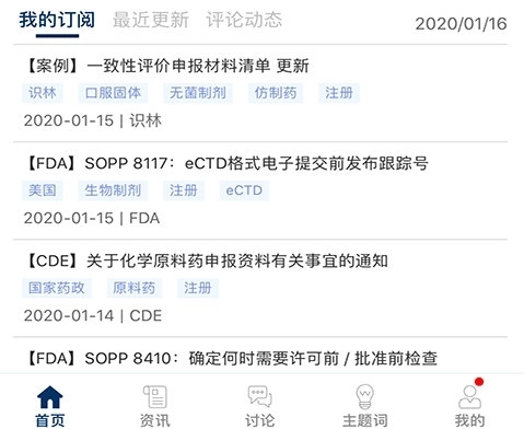 2、进入首页,查看我的订阅、最近更新、评论动态