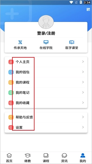 3、继续教育功能 你可以在这里选择参加网校学习,或是参与在线会议、在线课程等相关功能。