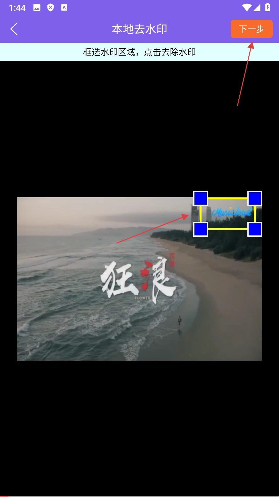 3、在本地去水印页面通过【框选水印区域】的操作后,点击【下一步】按钮,即可进入预览效果页面。