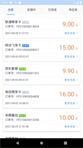 2、软件为用户提供电信、联通、移动三大运营商的海量流量优惠套餐,包月等功能设置简单易用。