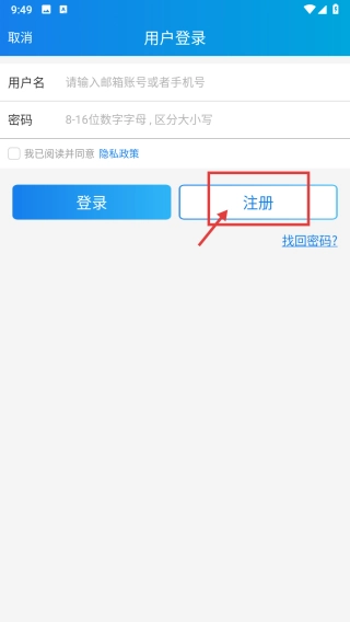 在用户登录页面,点击注册选项,即可进入用户注册信息填写页面。
