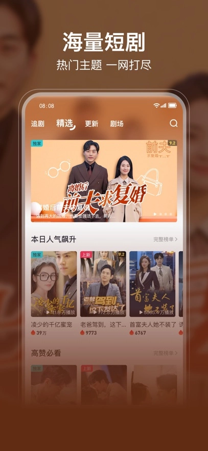 剧酷短剧具备自动推送短剧的功能,可快速为用户筛选出最受大众喜爱的优质短剧内容。