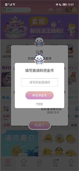 1、抓抓星球首次绑定手机号可以获得5金币