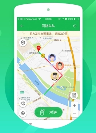 4、进入同路车队页面,查看详细的地图展示,选择对讲功能