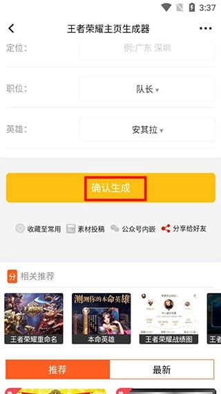 2、个人主页制作功能,只需输入id并选择对应的区服,系统就能直接读取你的相关信息,并生成对应的图片。