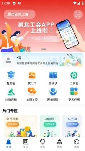 由湖北省总工会倾力打造的湖北工会,是融合工会动态、求职就业、培训学习与权益保障的智慧工会平台。我们聚焦职工群体的多元需求,提供求职招聘、在线培训、法律援助、心理咨询等实用服务。平台还设有工会福利、交友活动、服务地图等丰富板块,致力于从工作到生活全方位提升职工的体验与品质。愿“湖北工会”成为您身边的贴心帮手,伴您温暖前行。
