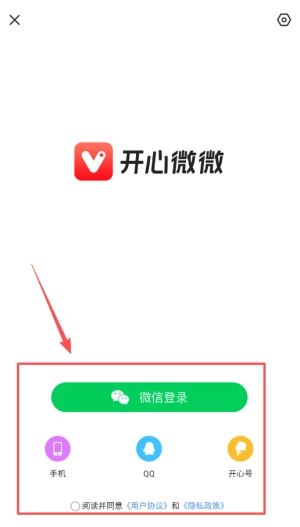 1、第一步,在手机的应用商店里搜索“开心微微”,下载安装好后打开应用;它简洁的界面设计,能让用户很轻松地找到各项功能。