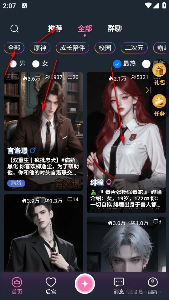 我们也可以自己选择并创建一个智能体,我们可以点击下方中间的图标创建角色或者平行宇宙多角色对话。