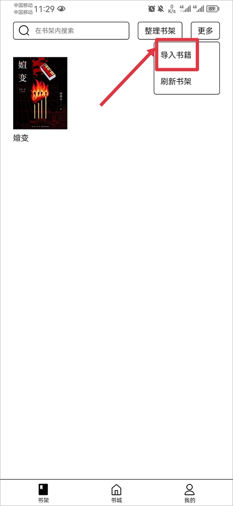 5、在书架中你可以随时查看你加入的书籍,同时也可以将手机本地的书籍导入至中