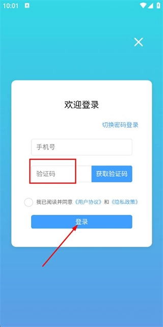 3、在验证码输入框中填写验证码,点击登录完成账号的登录操作。