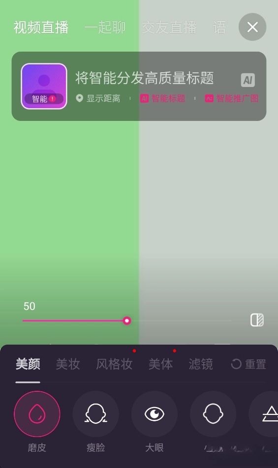 3、调整你的美颜、美体和滤镜效果。