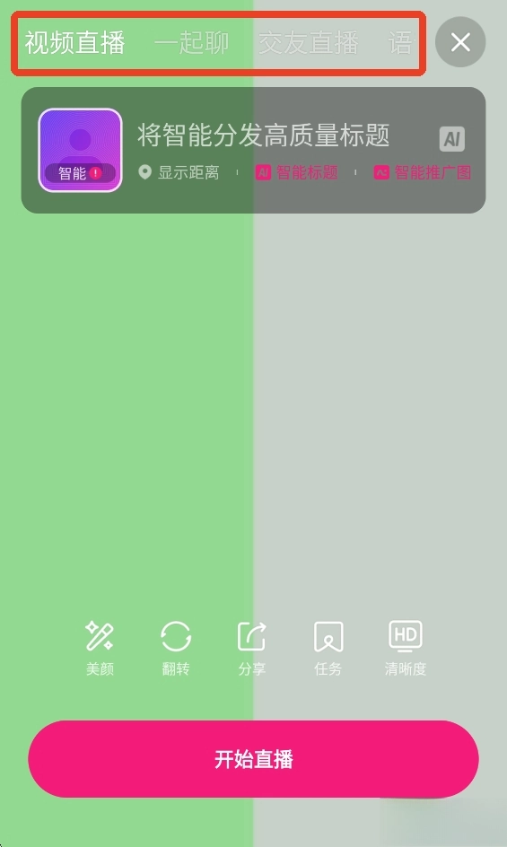 2、进去之后在上方选择你的直播类型。