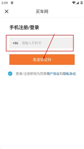 3、在手机注册/登录页,填写请输入手机号,点击发送验证码。