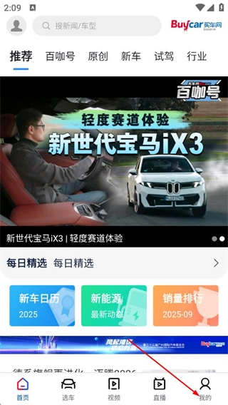 1、在买车网首页,点击底部我的选项,进入个人中心页面。