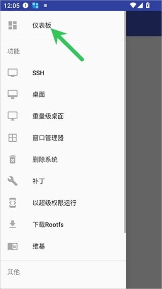 1、打开 AnLinux应用,点击左上角的扩展功能图标