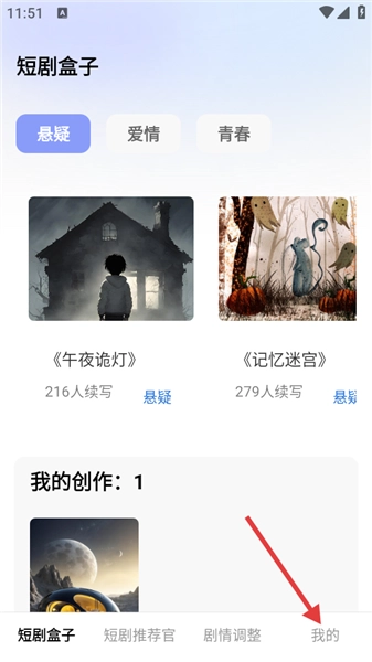3、最后别忘了分享你的精彩作品,和其他剧迷一同探讨剧情,尝试创作短剧,让你在短剧领域身兼导演与编剧的角色。