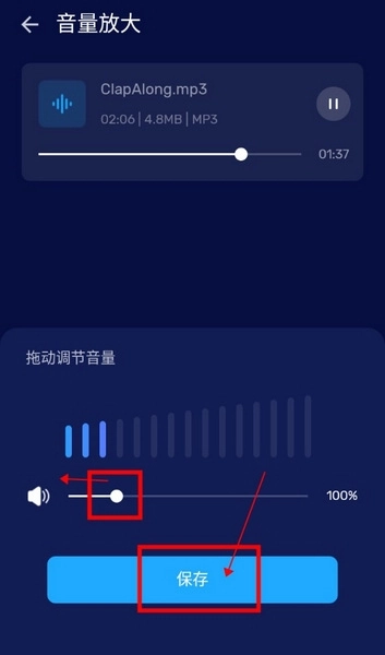 3.【音量放大】页面的下方提供了滑块,只需要拖动就能够调整音量大小了。