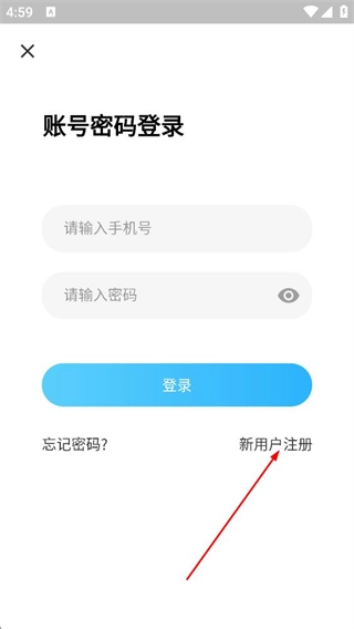3、在账号密码登录页面,点击新用户注册选项,进入注册页面。