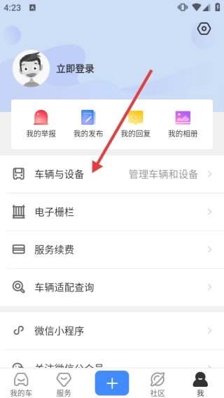 3、在个人页面中点击【车辆与设备】选项,以管理车辆相关信息。