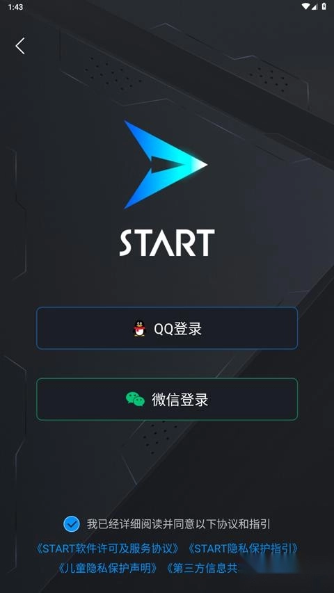 1、打开腾讯START云游戏最新版,支持QQ登录和微信登录;