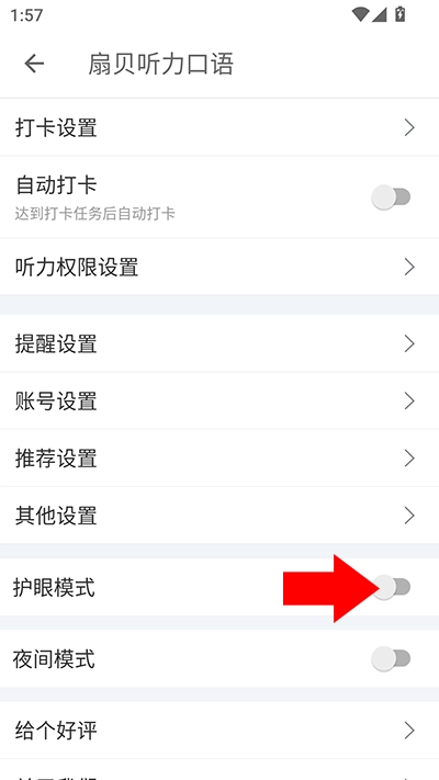 3、进入设置界面,点击【护眼模式】右侧按钮开启。