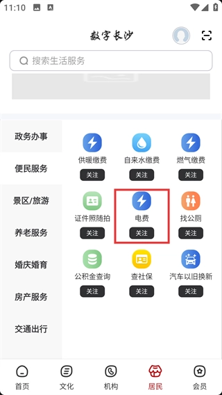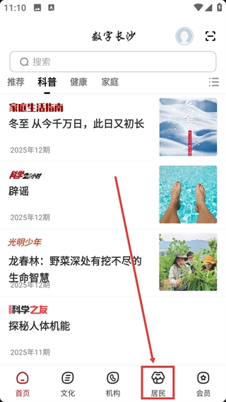 1、在【数字长沙】首页底部,找到【居民】按钮并点击,即可进入对应的板块。