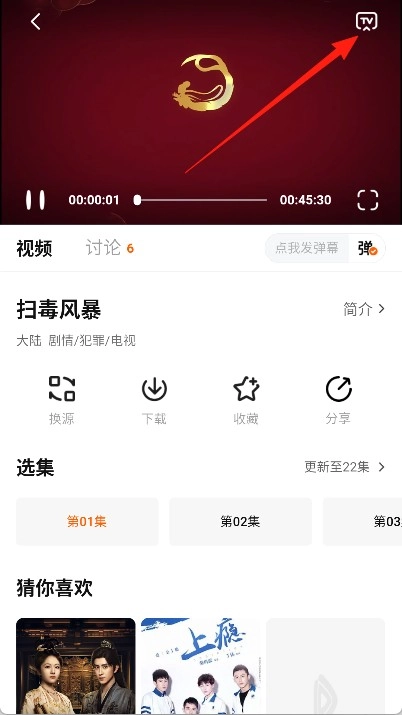 3、在播放界面中点击右上角的“TV”投屏按钮