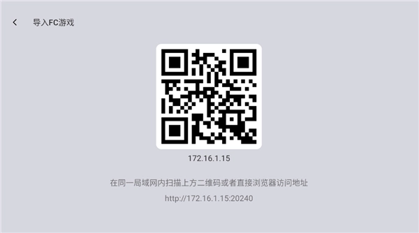 3、在同一局域网环境下,可扫描上方二维码,也能直接在浏览器中输入地址访问;用户可使用手机(支持微信、QQ等扫描工具)扫描二维码,随后点击上传需导入的游戏资源。