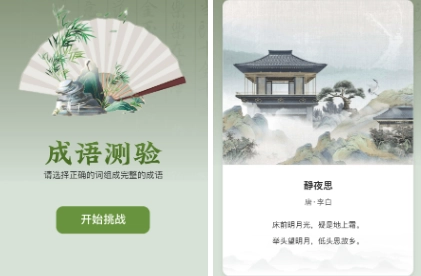 3.多元学习形式:配备练习、测验、闯关等不同学习模块,还有成语卡牌、填空、成语接龙等互动玩法,使学习过程更具趣味性和吸引力。