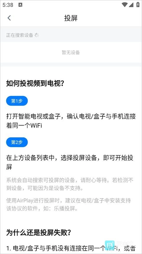 3、启动投屏设备搜索,待搜索完成后,页面会呈现出您的电视设备,直接点击该设备就能完成连接操作。