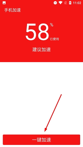 4、进入【手机加速】页面,查看内存已使用占比后,点击【一键加速】按钮,释放手机后台内存资源。