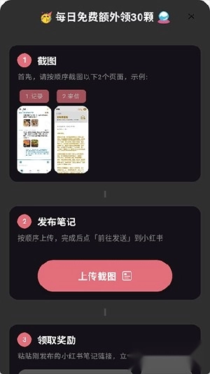 3、接下来就可以通过指定的方式领取免费使用的奖励,具体操作是将相关内容截图并发布到小红书平台,这样就能获得免费奖励,从而免费使用全部功能。