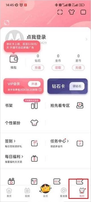 1、在手机里找到“看漫”应用并打开,进入软件后,点击右下角的【我的】选项进入个人中心