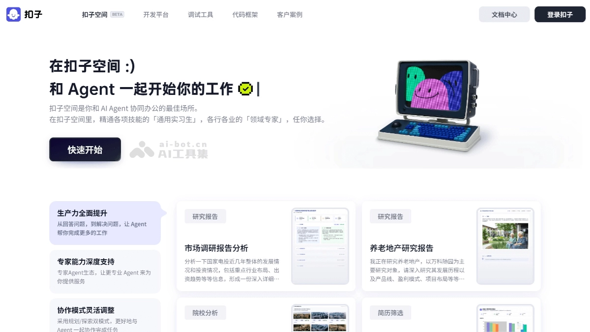 打开扣子空间,点击"快速开启"进入。