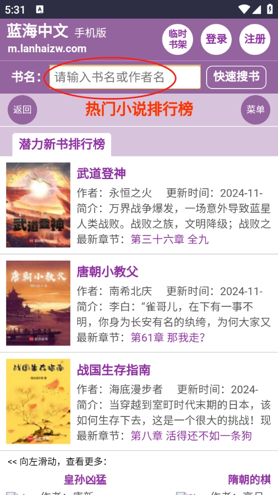 大家也可以通过书名或者作者名进行搜索。