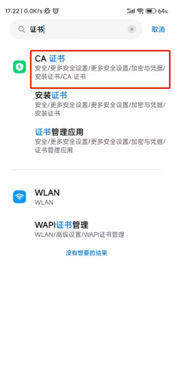 ①搜索 证书,选择CA证书