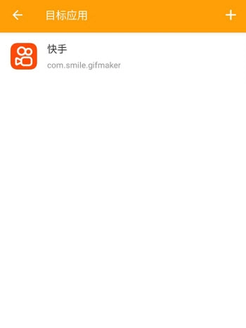 操作路径:设置→目标应用→点击“+”图标选择目标应用(如快手)